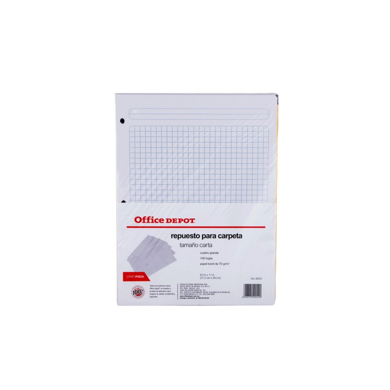 REPUESTO DE HOJAS PARA CARPETATAMAÑO CARTACUADRO GRANDEPAPEL BOND DE 70 GRS/M2100 HOJAS21 X 28 CENTÍMETROS