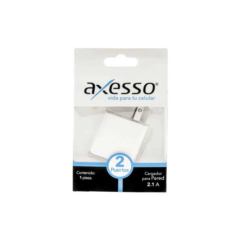 CARGADOR DE PARED AXESSO DE 2 ACARGA DOS DISPISITIVOSSIMULTANEAMENTEOPTIMIZA LA CARGA EN DISPOSITIVOSDE MANERA SEGURAAMPERAJE CERTIFICADOCONECTESE A LA FUENTE DE ENERGIA YCARGUE CUALQUIER DISPOSITIVO