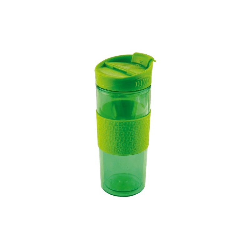TERMO PARA BEBIDAS FRIAS OCALIENTES, DE TRITAN DOBLE MURO,CON MANGA DE SILICON Y TAPA CONROSCA.