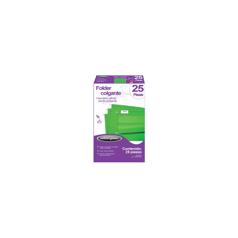 ARCHIVO COLGANTE COLOR VERDEBRILLANTE TAMAÑO OFICIO CON CEJASFLEXIBLES TRANSPARENTES E INDICESDE PAPEL PERSONALIZABLES
