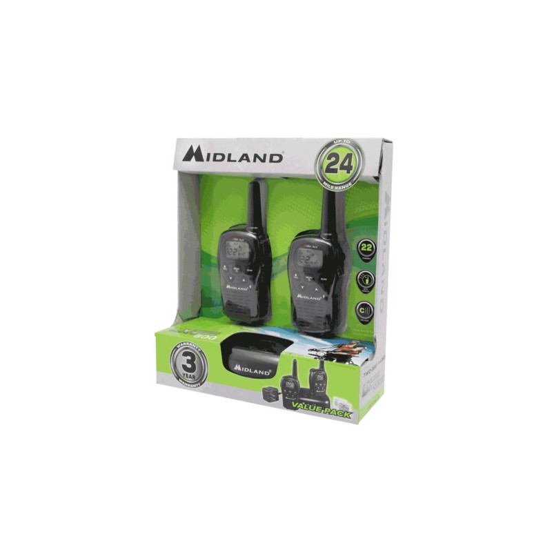 RADIO DE DOS VIAS MIDLAND LXT500VP3* ALCANCE 24 MILLAS* 22 CANALES* ALERTA DE LLAMADA* BLOQUEO DE TECLADO