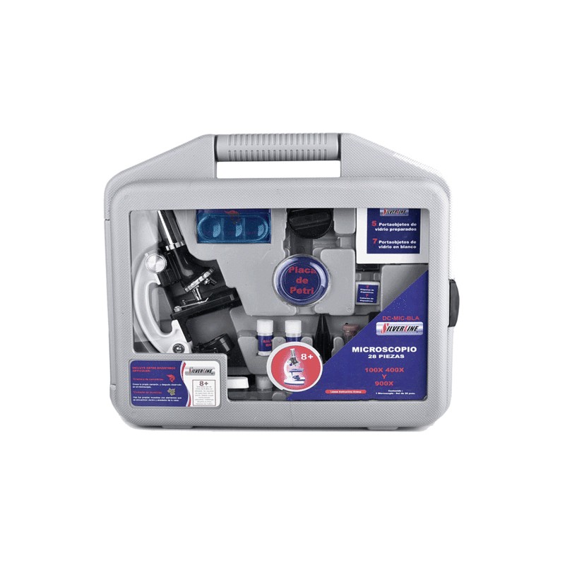 MICROSCOPIO BLANCO 100X, 400X Y 900X ESTUCHE DEPLASTICOINCLUYE KIT DE 28 ACCESORIOS