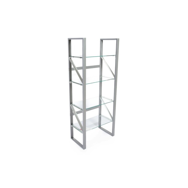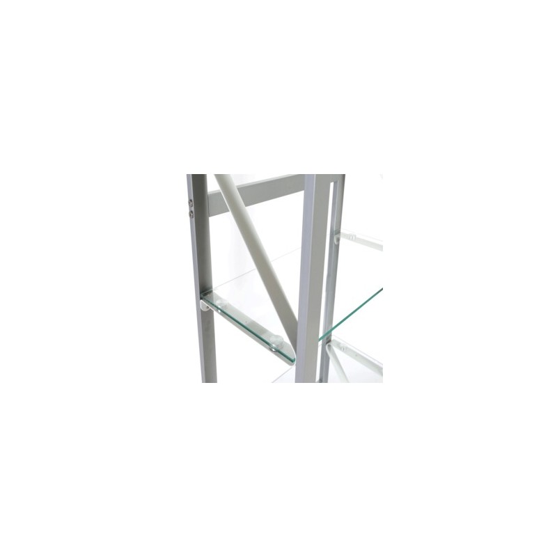 LIBRERO 4 REPISAS ESTRUCTURA DEACERO CON CRISTAL TEMPLADO DE 6MMTRANSPARENTE, COLOR PLATA BLANCO16 SOPORTES DE ALUMINIO PARACRISTALALTO 150ANCHO 60PROFUNDO 35PAD ABC