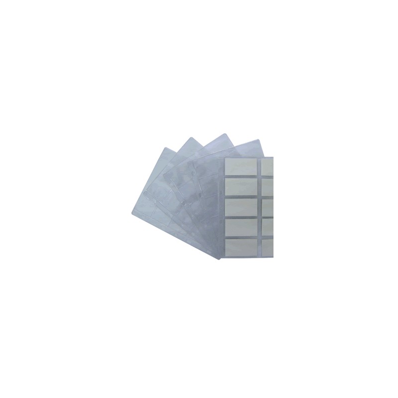 REPUESTO PARA TARJETERO TAMAÑOCARTA, PAQUETE DE 5 HOJAS CON 10COMPARTIMENTOS PARA 20 TARJETAS CONCAPACIDAD DE 100 TARJETAS DEPRESENTACIÓN, FABRICADO CON ELVINIL SATINADO TRASLUCIDO DE LA MASALTA CALIDAD PARA EVITAR LOSMOLESTOS REFLEJOS DE LUZ.